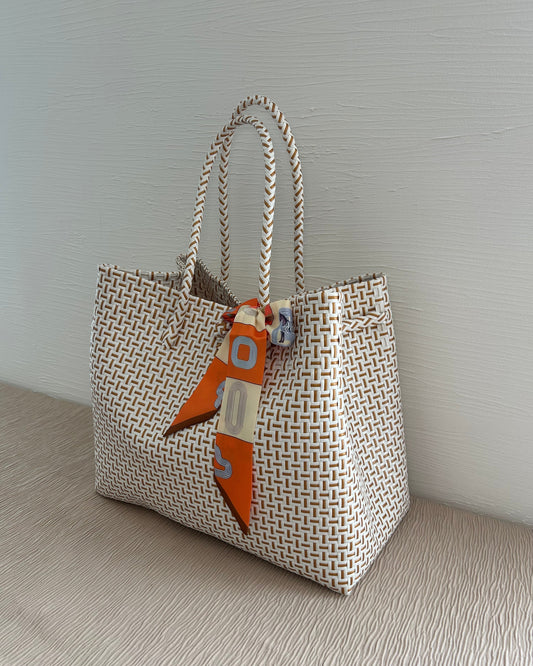 プラカゴバッグ XL 《スカーフセット》シャンパンゴールドホワイト