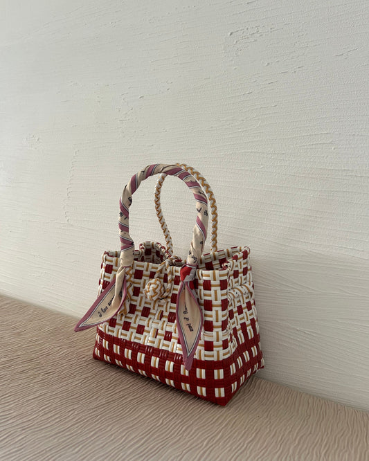 プラカゴバッグ XS 《スカーフセット》ラムレッドホワイト
