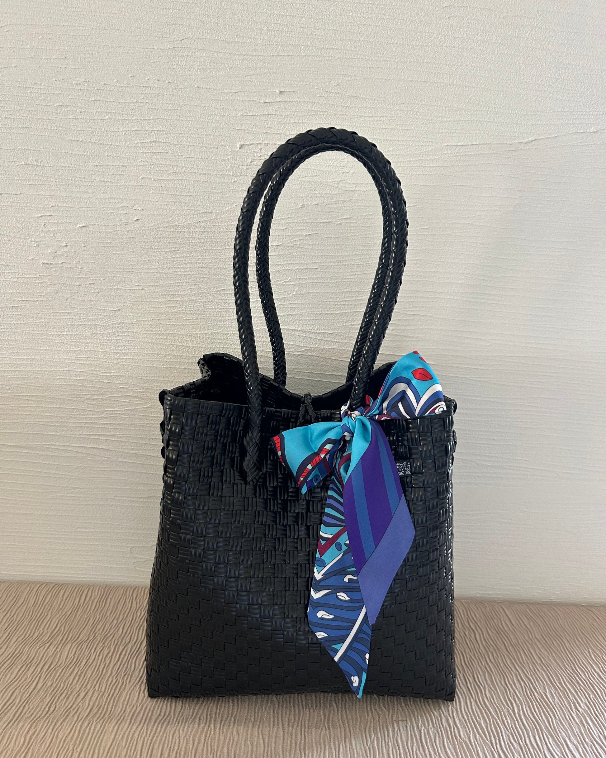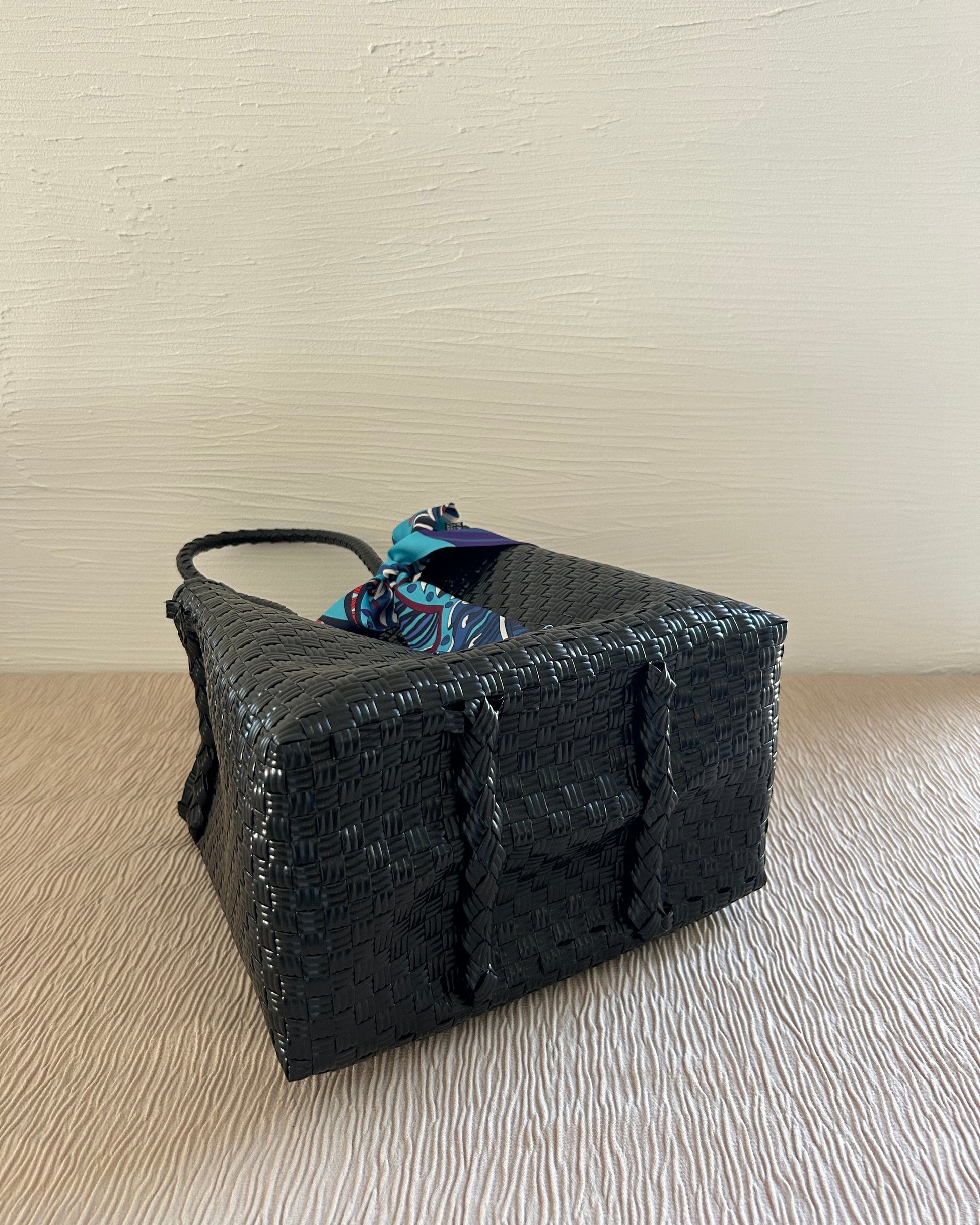 『To Myself』のプラカゴバッグはインドネシアの職人によって手織りで作られており、100%リサイクルプラスチック素材を使用しています。軽量で、耐久性が高く、水に濡れても平気な素材なので水洗いも可能です。日常的なお出かけやショッピング、アウトドア活動など幅広くご使用いただけます。