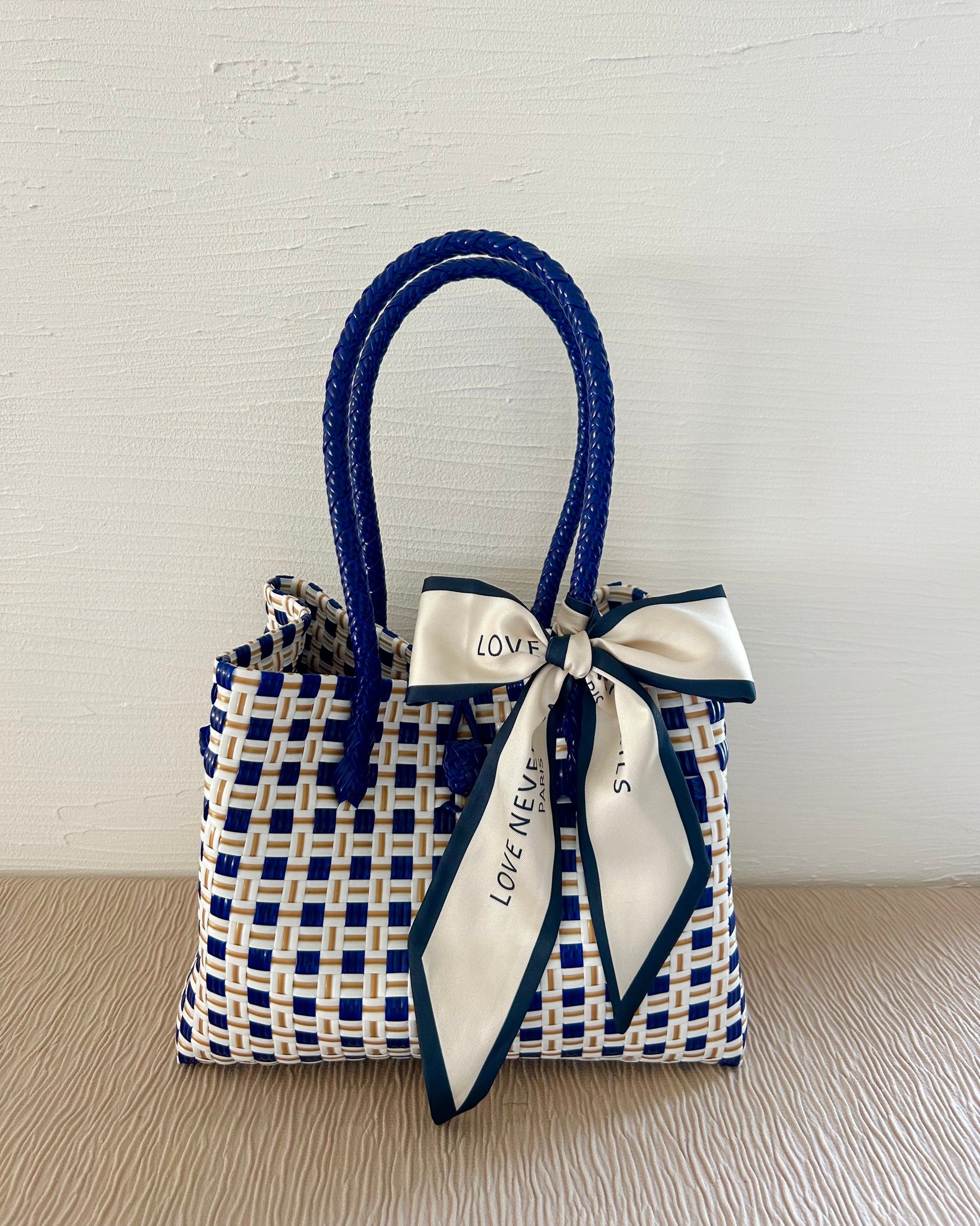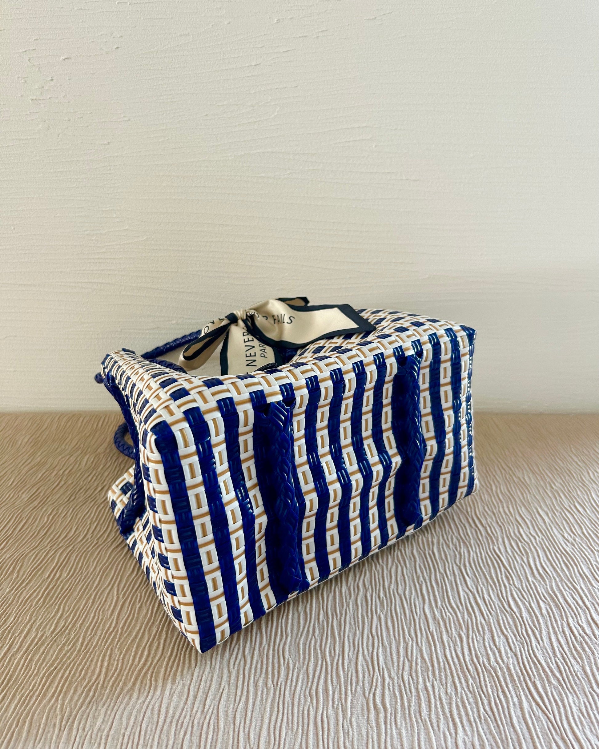 『To Myself』のプラカゴバッグはインドネシアの職人によって手織りで作られており、100%リサイクルプラスチック素材を使用しています。軽量で、耐久性が高く、水に濡れても平気な素材なので水洗いも可能です。日常的なお出かけやショッピング、アウトドア活動など幅広くご使用いただけます。