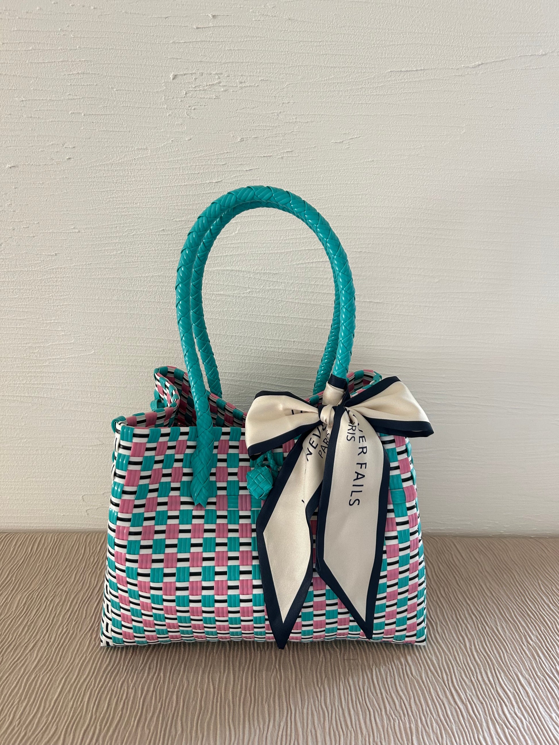 プラカゴバッグ M横長 《スカーフセット》コットンキャンディー (ブルーハンドル)