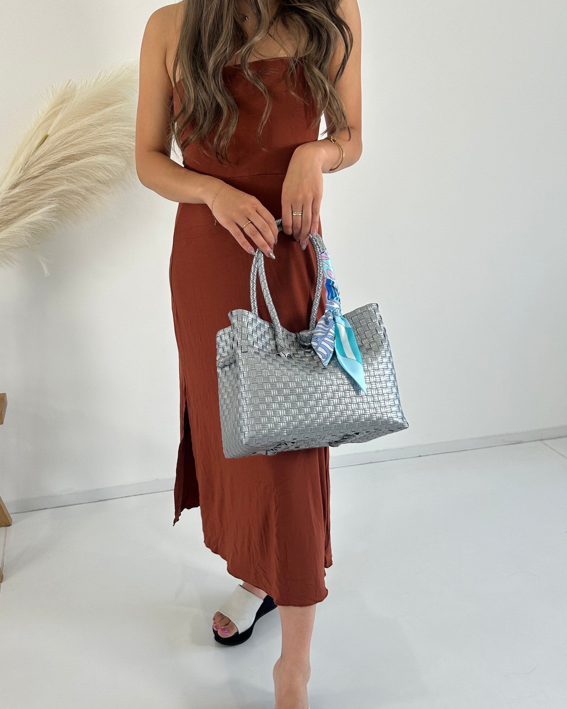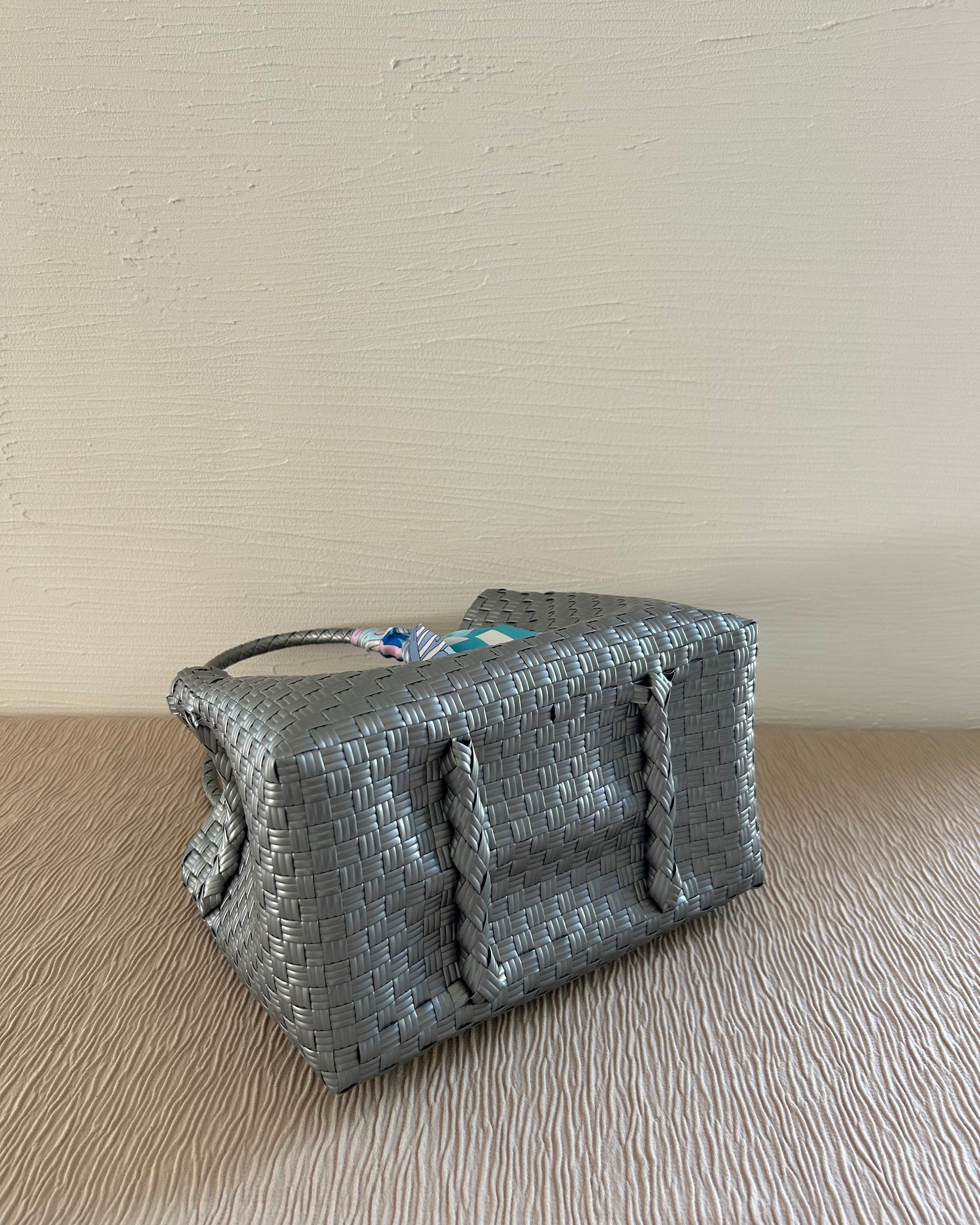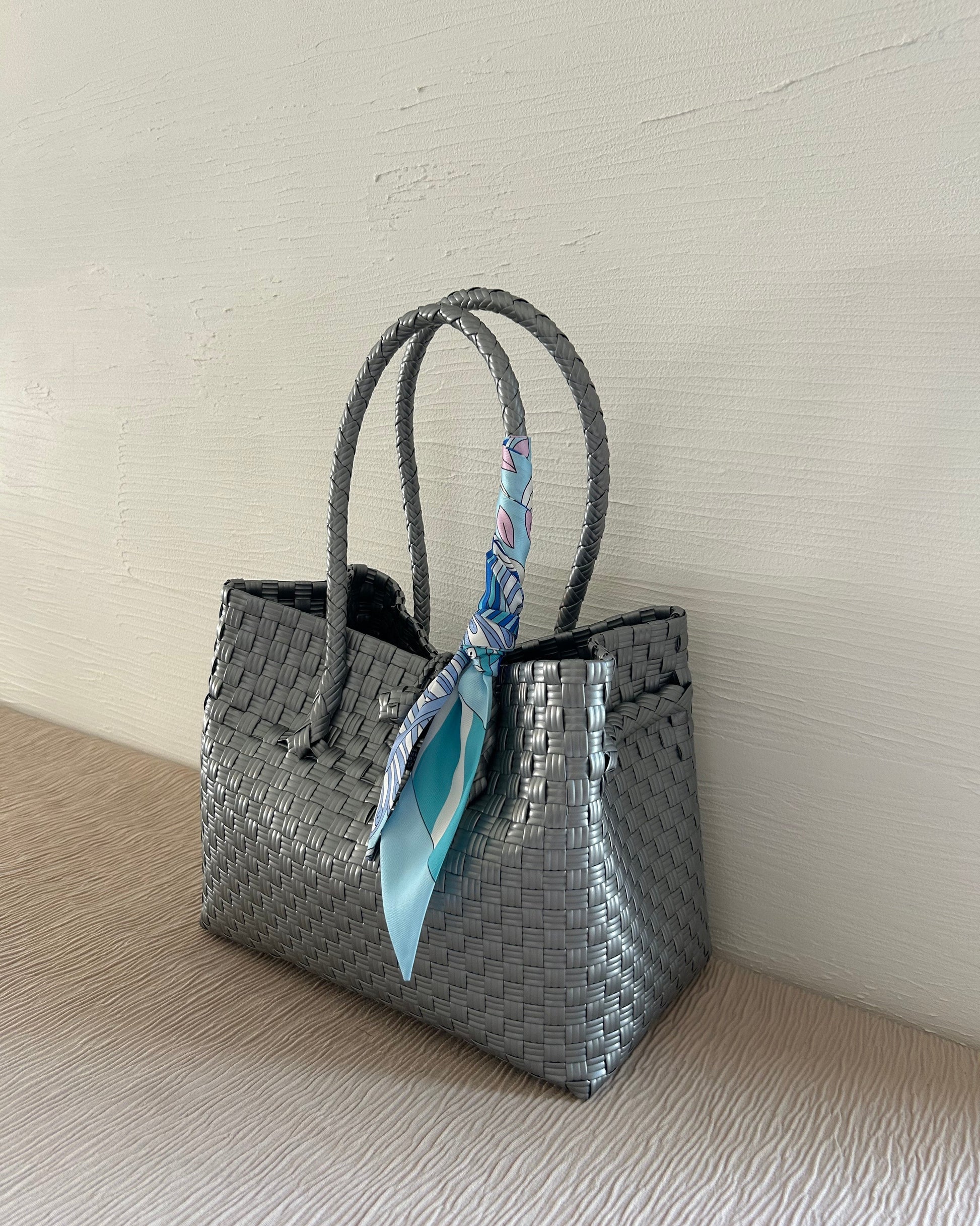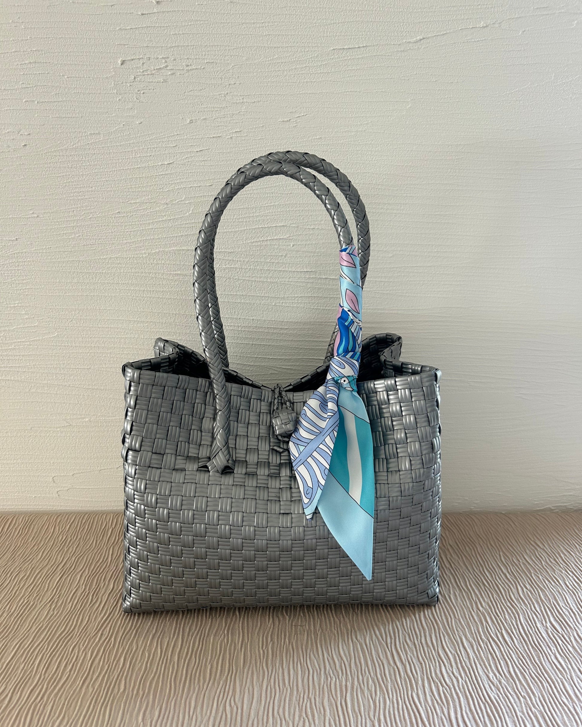 プラカゴバッグ M横長 《スカーフセット》グリマーシルバー