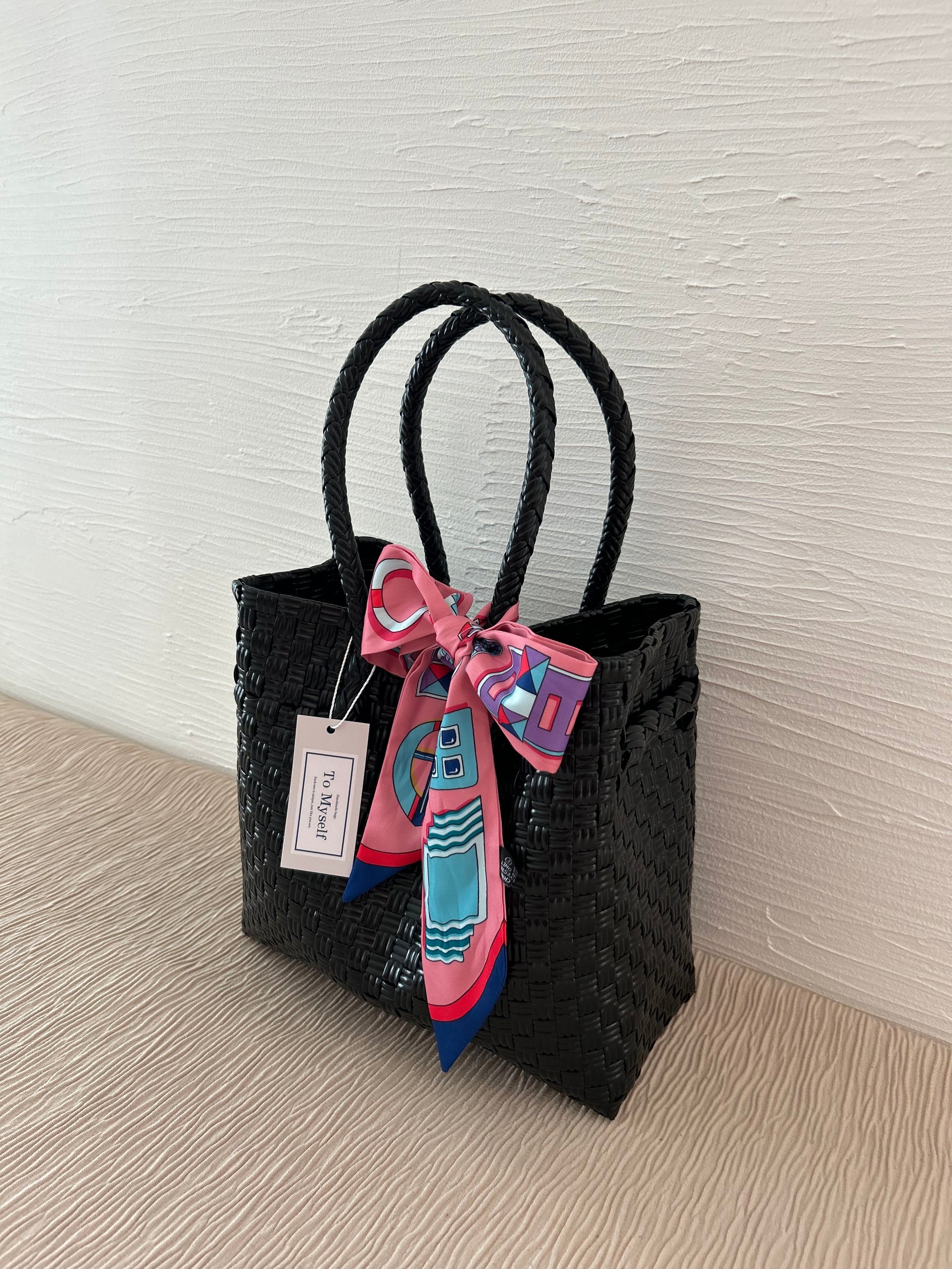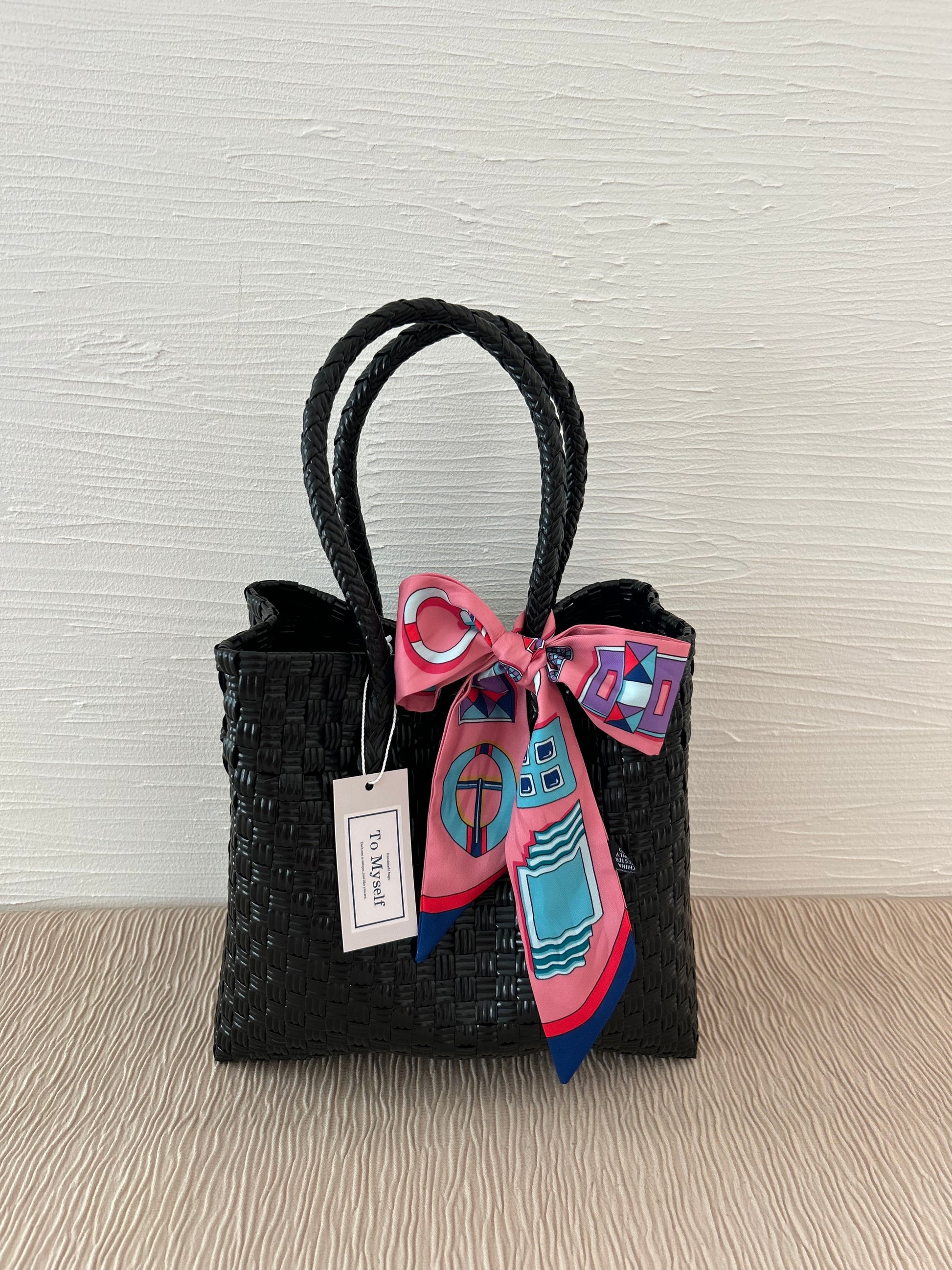 『To Myself』のプラカゴバッグはインドネシアの職人によって手織りで作られており、100%リサイクルプラスチック素材を使用しています。軽量で、耐久性が高く、水に濡れても平気な素材なので水洗いも可能です。日常的なお出かけやショッピング、アウトドア活動など幅広くご使用いただけます。
