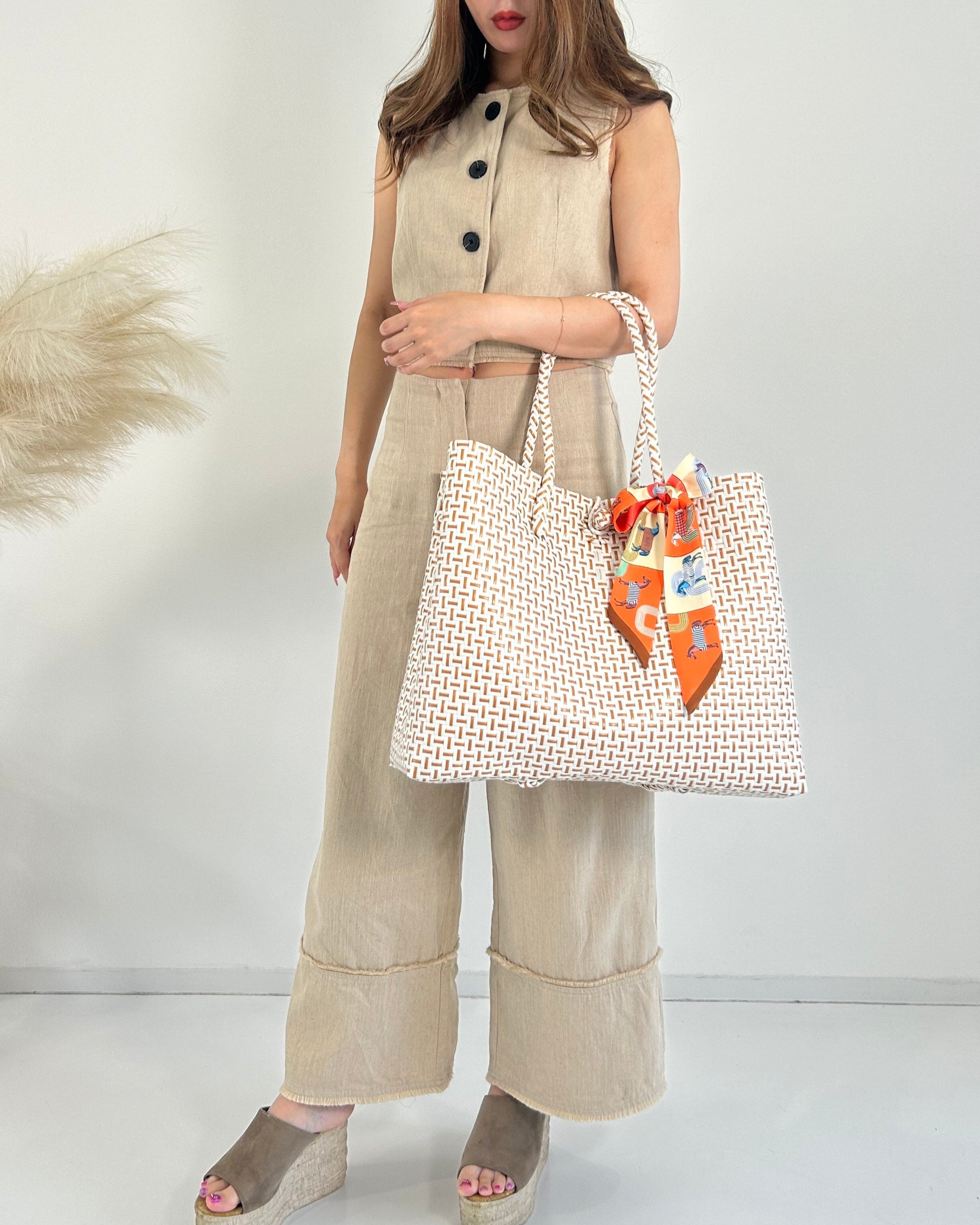 ハンドメイド:インドネシアの職人によって本体からハンドル部分に至るまで、丹念に手織りで作られており、手作りの温もりと心がこもったバッグ。