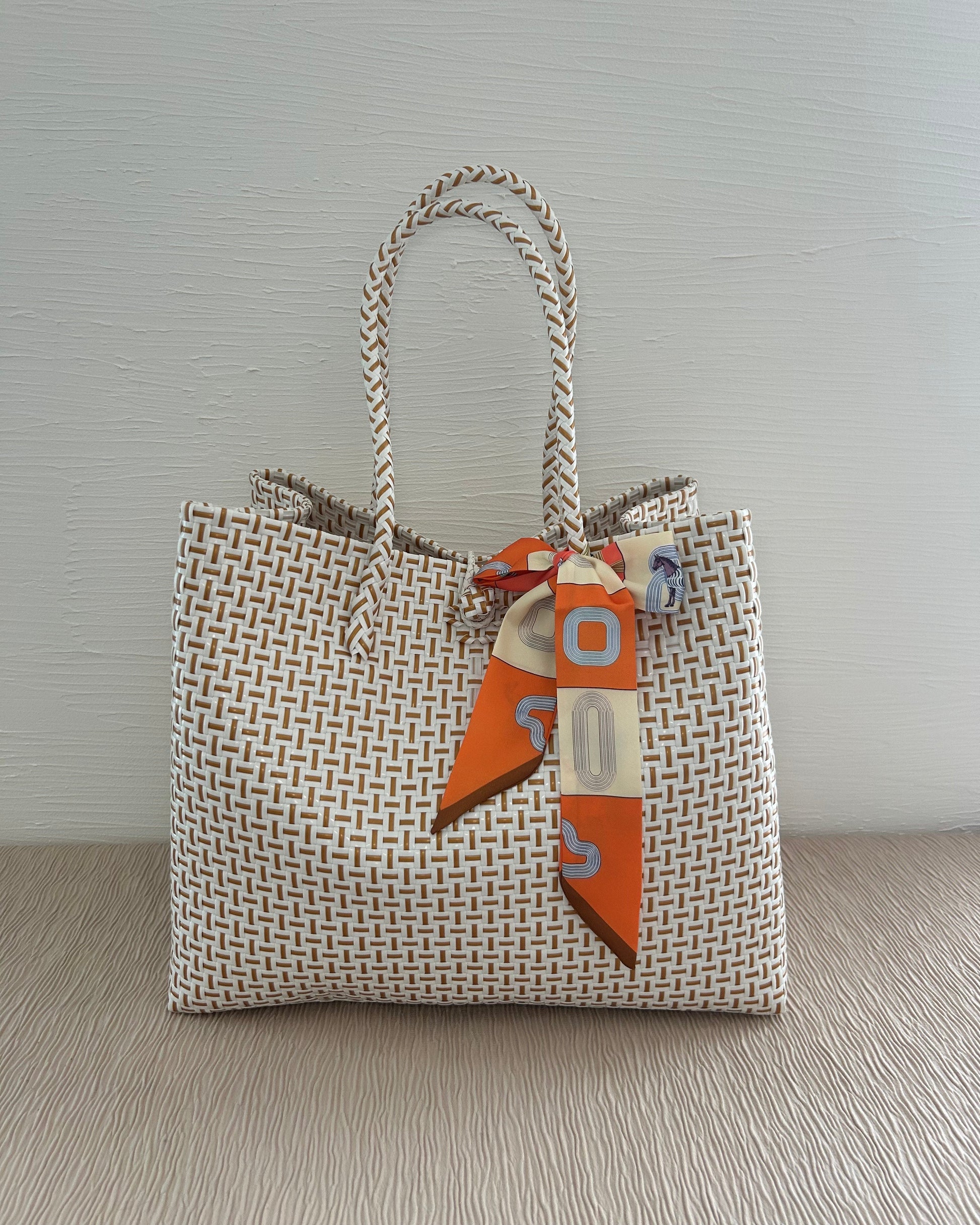 プラカゴバッグ XL 《スカーフセット》シャンパンゴールドホワイト