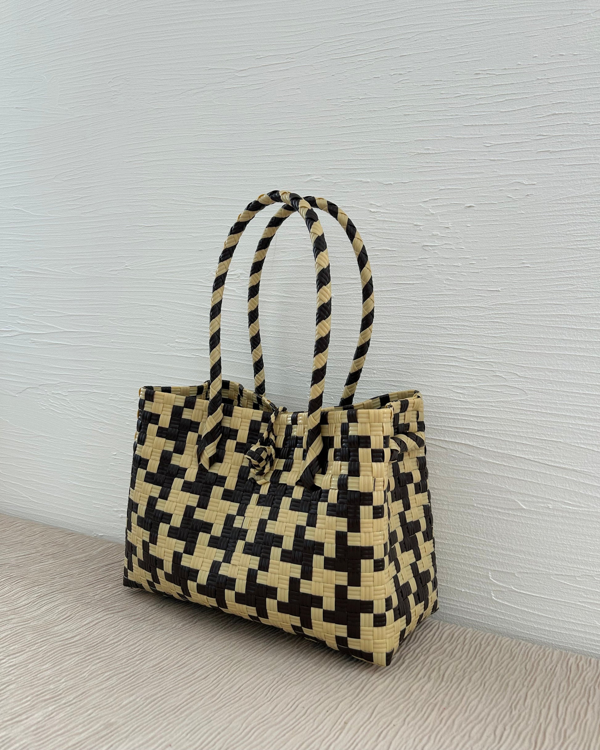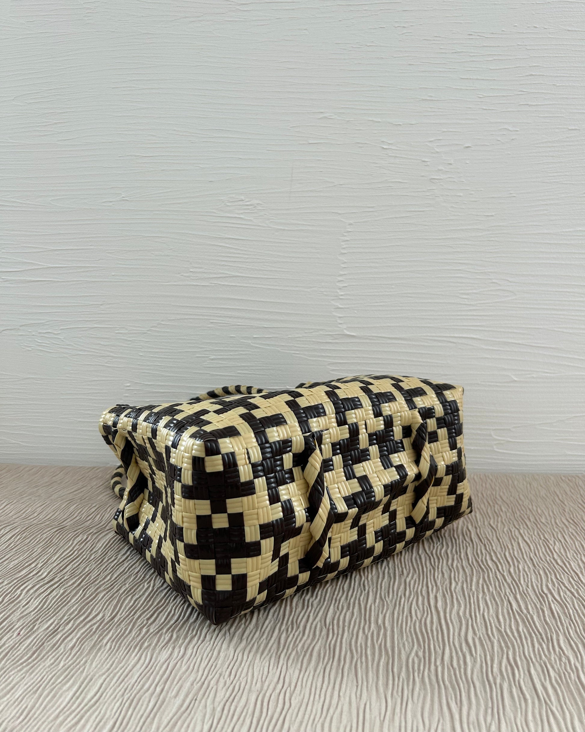 ハンドメイド:インドネシアの職人によって本体からハンドル部分に至るまで、丹念に手織りで作られており、手作りの温もりと心がこもったバッグ。