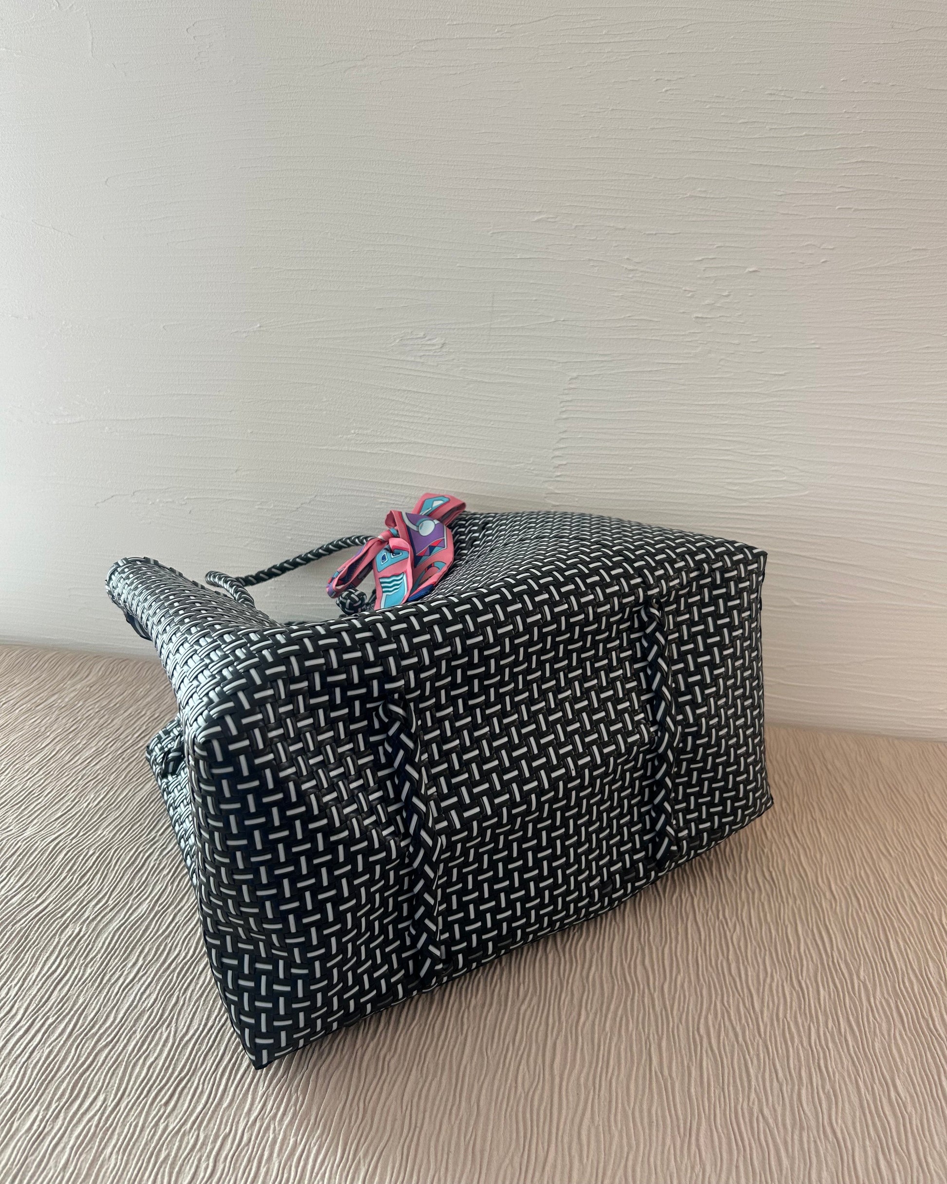 『To Myself』のプラカゴバッグはインドネシアの職人によって手織りで作られており、100%リサイクルプラスチック素材を使用しています。軽量で、耐久性が高く、水に濡れても平気な素材なので水洗いも可能です。日常的なお出かけやショッピング、アウトドア活動など幅広くご使用いただけます。